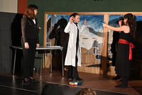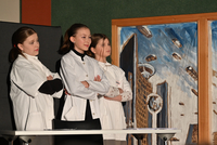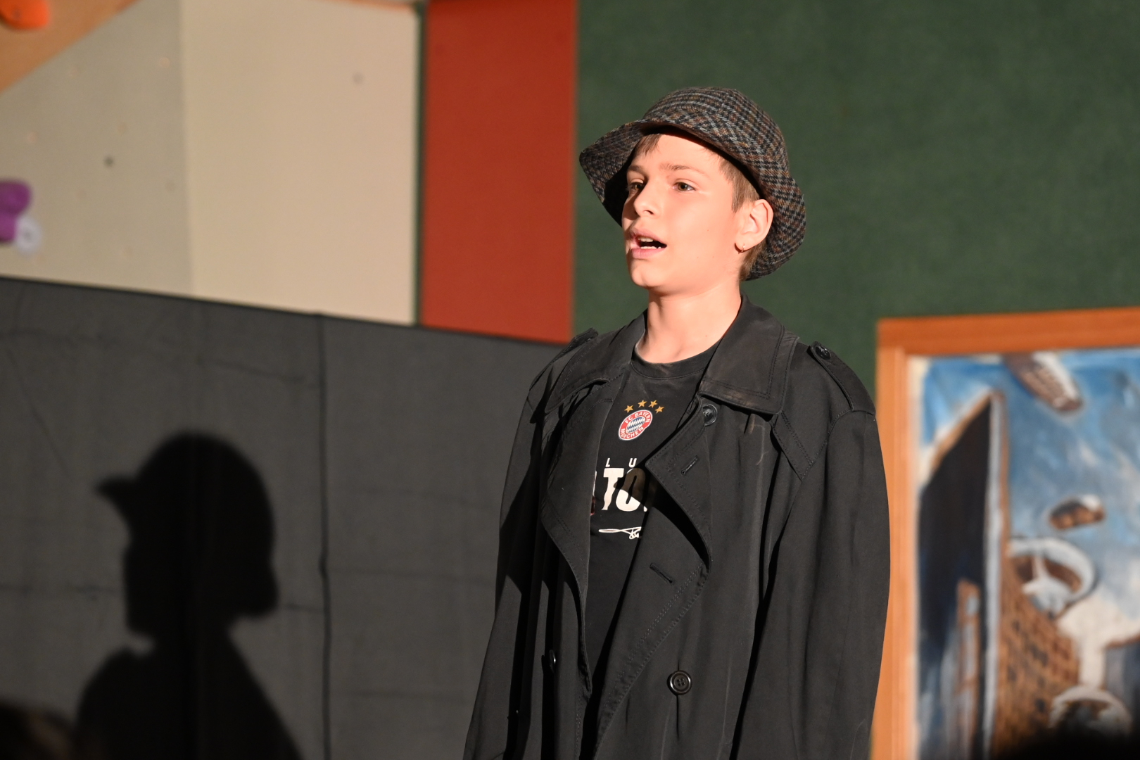 Wer bist du? Immer wieder stellten die Akteurinnen und Akteure der Theater AG der Unterstufe eindrücklich durch das Publikum marschierend diese Frage bei ihren zwei Aufführen der Krimikomödie "Am achten Tag schuf der Mensch den Menschen". Eine Krimi in der Zukunft, in der es um korrupte Wissenschaftler, Klone, kaltblütige Morde – und mittendrin um einen mehr oder weniger erfolgreichen Detektiv mit einer besonderen Vorliebe für Whisky ging. Eine Krimikomödie, fein und ironisch von der Theater AG der Unterstufe unter der Leitung von Frau Gengnagel auf die Bühne gebracht. Aber es war viel mehr als nur eine Komödie. Es ging um ganz große Zukunftsfragen der Menschen. Eine Zeit in der Zukunft, in der Individualität und das Recht auf ein selbstbestimmtes Leben längst keine Selbstverständlichkeit mehr sind. Eitelkeiten, Egoismus und Machtgier treiben die Handlung voran. Als Zuschauer lächelte man über die schnoddrigen oder eitlen Charaktere, um im nächsten Augenblick gleich wieder ins Grübeln zu kommen und sich zu fragen: Ist das die Zukunft der Menschheit? Toll gespielt, Theater AG Unterstufe!