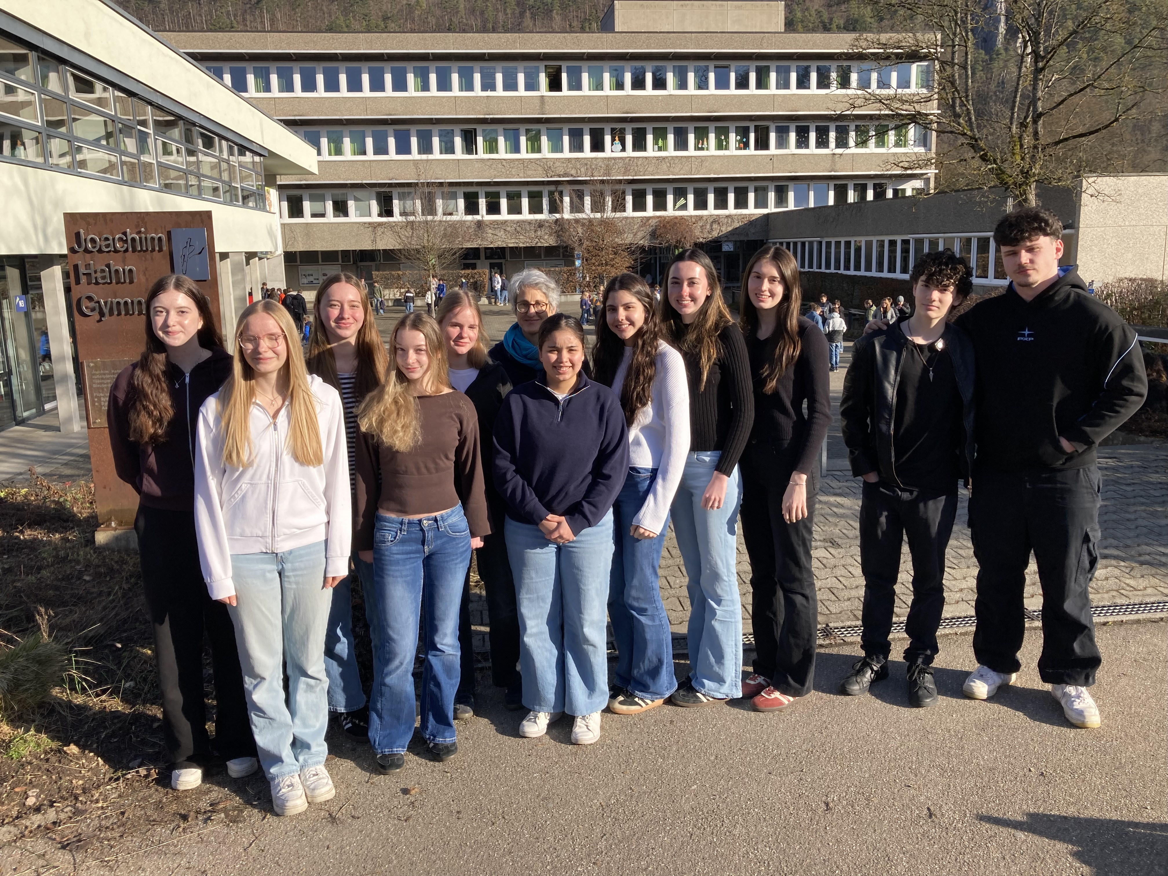 Vom 17. November 2025 bis zum 27. Februar 2026 waren Augustina, Tatiana, Aixa, Victoria und Argos aus Paraguay zu einem Austausch bei uns am Joachim-Hahn-Gymnasium Blaubeuren. Sie wohnten bei ihren Gastgeschwistern Jolina, Amelie, Johanna, Megan und bei Jan aus den Klassen 9 und 10. Kurz vor Ende ihres Aufenthaltes konnten wir noch ein gemeinsames Abschiedsbild machen. Demnächst werden noch ein paar Eindrücke aus der Zeit des Austausches auf diesen Seiten veröffentlicht.